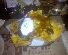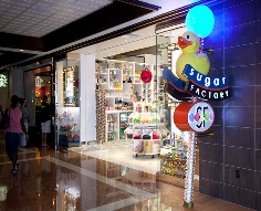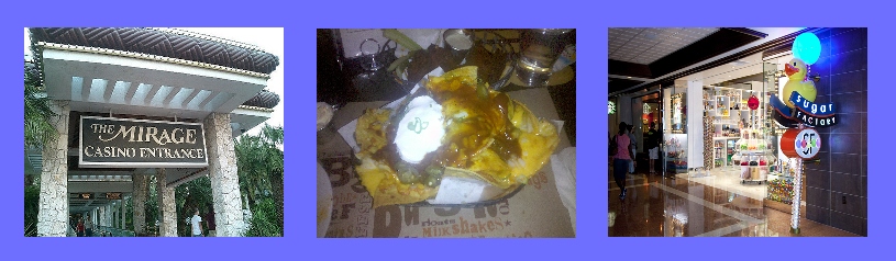 No surprise wake up call today! Got to catch up on some sleep. Today DH was invited to a Blackjack tournament over at the Mirage. His first Session started around 12. So we got up, dressed and headed across the street. I actually liked the atmosphere of the place. Seemed very lively, not jammed packed or loud. Kinda cozy. Anyway, I have to say that these machines were rocking. I got back all of my bankroll and then some. I will skip the specifics and save them for the Photo/Video section. This is where I did most of my recording, because the action here was worth recording! My big money makers were Viva Monopoly & Mermaid's Gold. So my DH text me that he was the winner of his Blackjack session and moves on to round 2 in a couple hours. So we grabed lunch at BLT Burger. I had nachos and wings again! I really don't know why it kept being my default selections for the trip, but it was good. Across from BLT was the Sugar Factory, know for their designer lollipops. This is where by Brit Brit stopped by with her kids for some sugar, earlier in the day before her concert. So I needed to go in and have "a moment". |